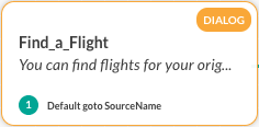 When you create a dialog task, by default the first component created and displayed is the user intent node or user intent component of the dialog task. The user intent is how the dialog task is identified by the end-user, for example, Search for a Flight, or Create a Ticket.